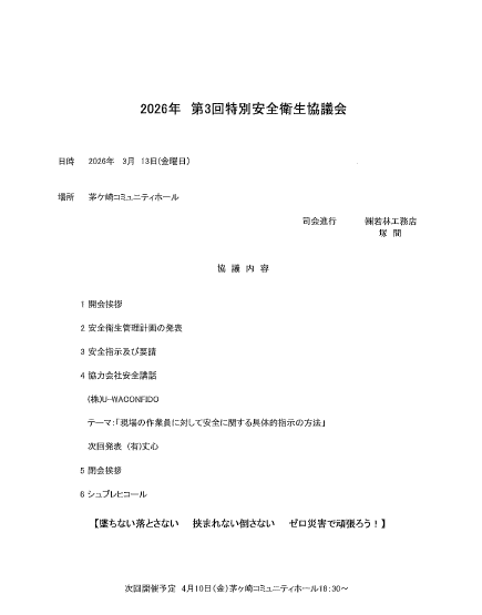 令和8年第3回特別安全協議会を行いました。